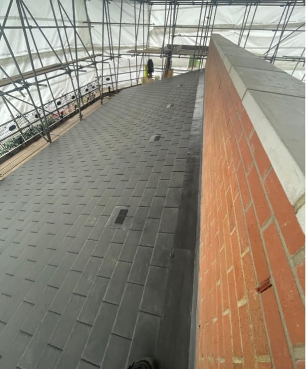 Following a detailed inspection, our team identified the defective areas and developed a clear programme of renewal. The existing damaged coverings were carefully stripped back, with defective flashing and underlay replaced using high-quality, durable materials. Insulation and ventilation improvements were also incorporated to address the root causes of the disrepair and prevent recurrence.